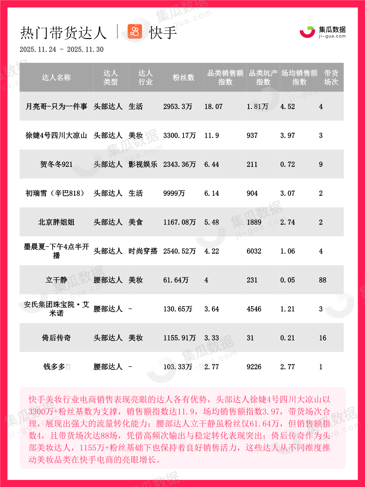 25年11月第4周-美妆行业抖音快手电商报告